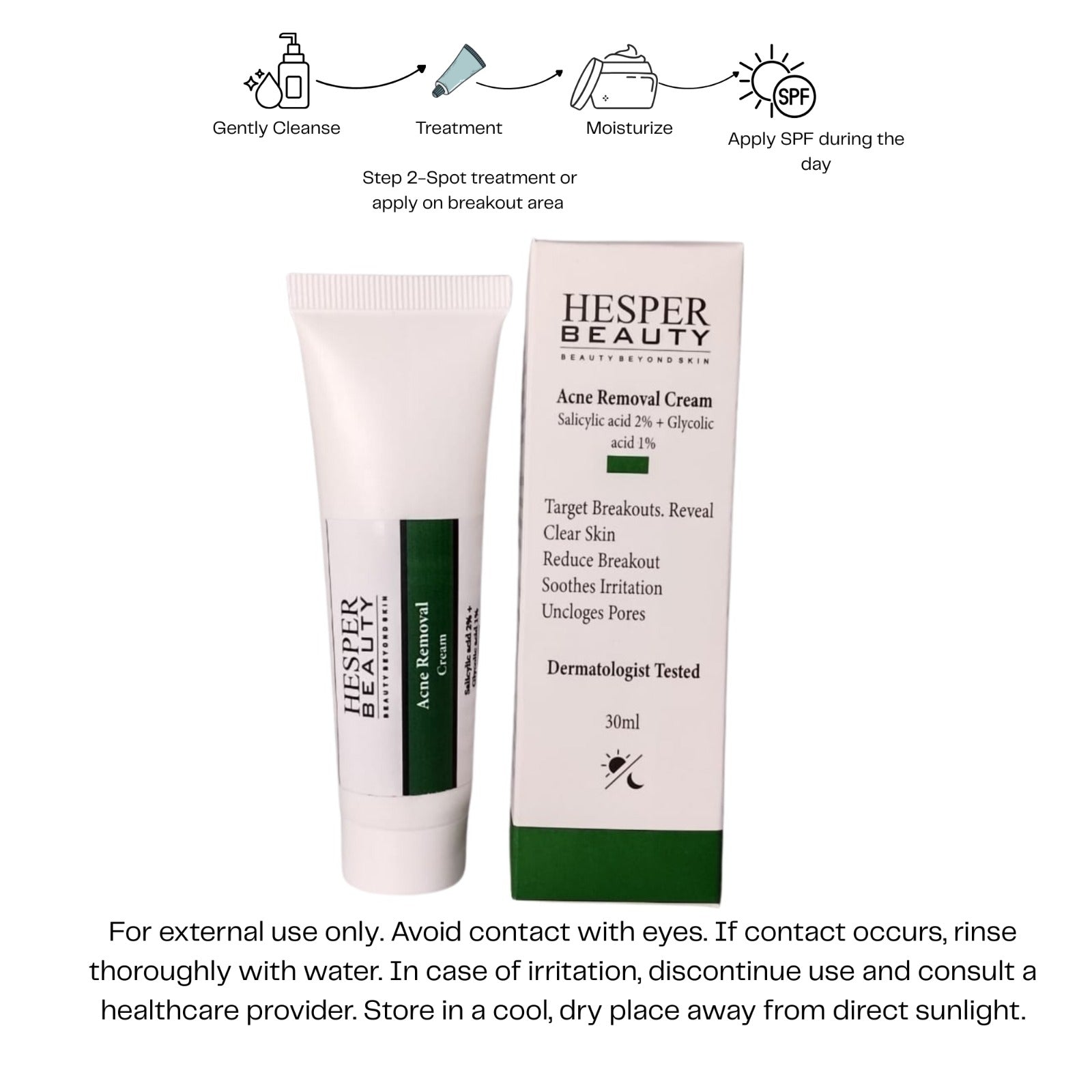 Hesper Beauty’s Acne Removal Cream is a fast-acting spot and all-over treatment that